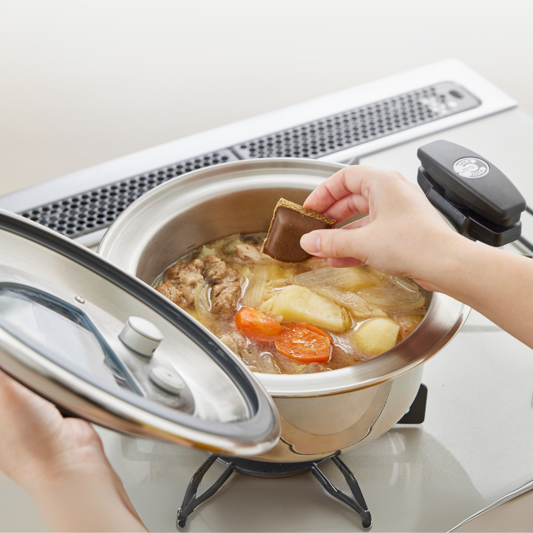 高温で調理できるため、調理時間が約1.5倍早まり、いつもの料理がスピーディーに仕上がります。普通の鍋での調理よりも早くやわらかくなるので、食材への染み込みも良くなります。